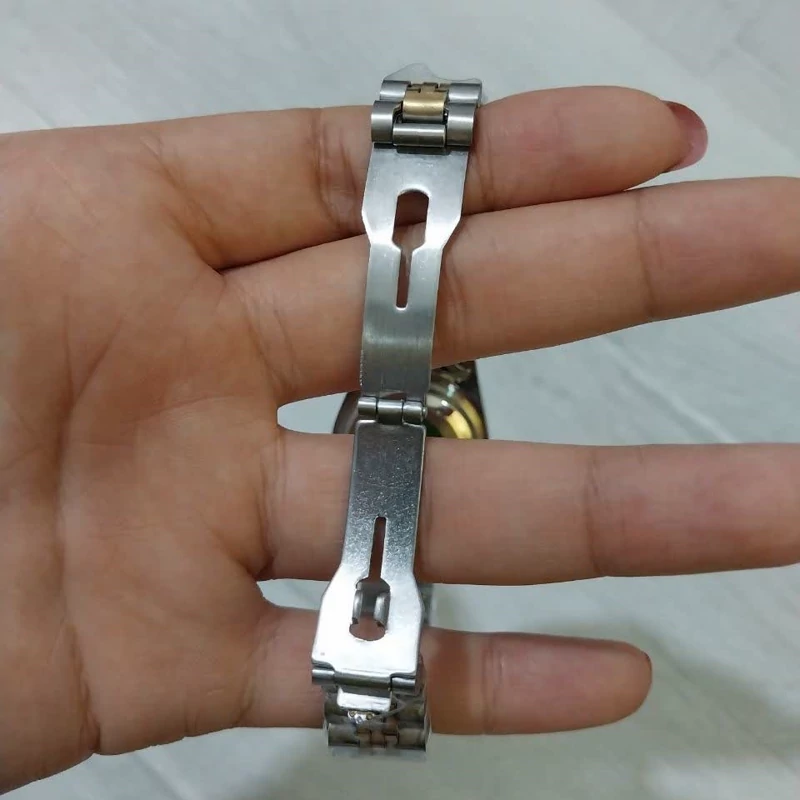 ساعت زنانه رولکس کیفیت درجه یک قفل اصلی حک آرم و تاج رولکس روی قفل و پیم و پشت قاب ساعت دارای تقویم ذره بینی