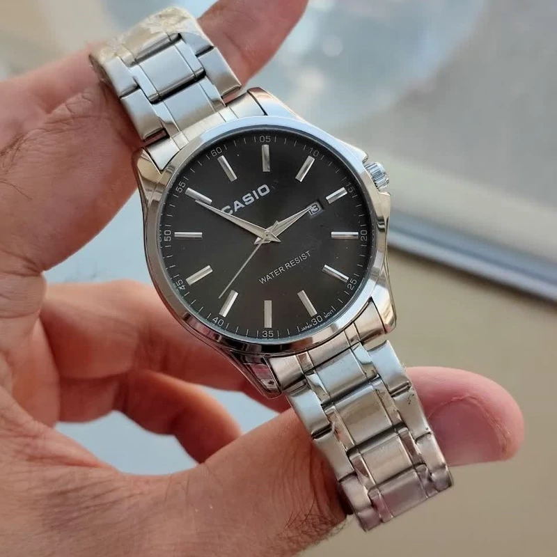 ساعت کاسیو مردانه بند و قاب نقره ای صفحه مشکی دارای تقویم 6 ماه گارانتی موتور ارسال رایگان بهمراه جعبه و کارت گارانتی در چند رنگ پر طرفدار بالاترین کیفیت موجود در بازار پایینترین قیمت نسبت ب نمونه های مشابه