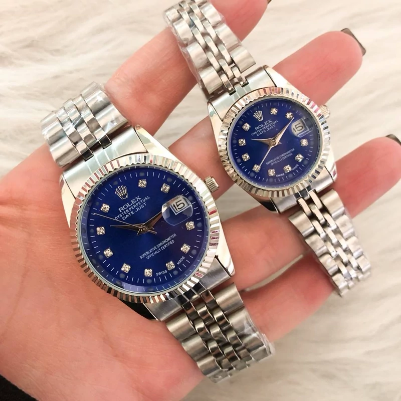 ست ساعت رولکس بنداستیل نقره ای صفحه آبی
