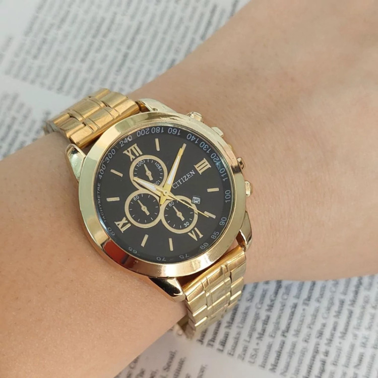 ساعت مردانه مارک سیتیزن بنداستیل طلایی صفحه مشکی. طرح سه موتوره