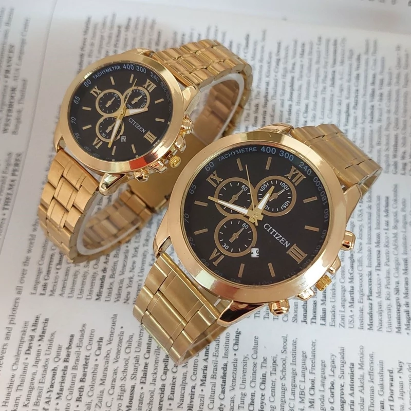 ساعت مردانه مارک سیتیزن بنداستیل طلایی صفحه مشکی. طرح سه موتوره