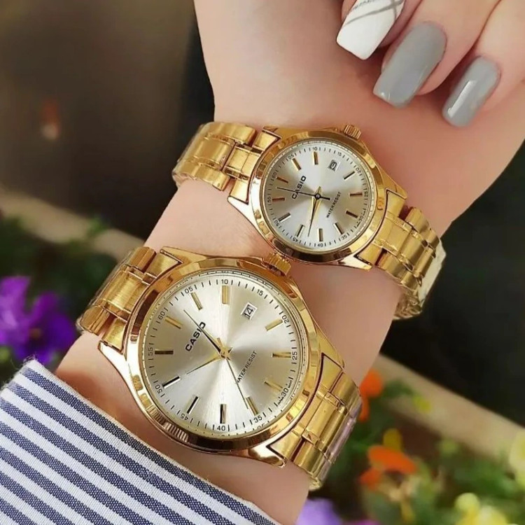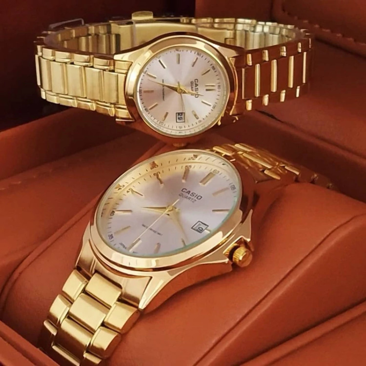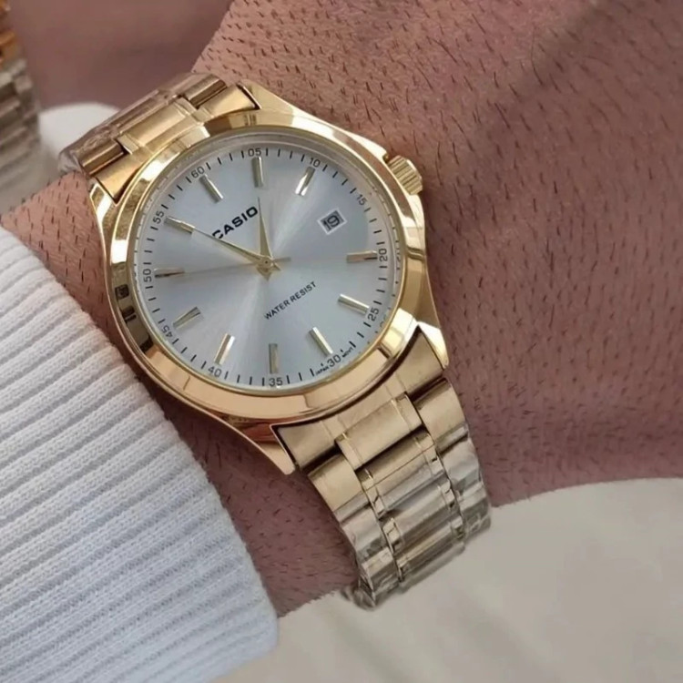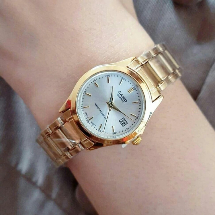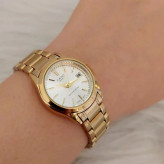 ساعت زنانه کاسیو بند و قاب طلایی صفحه سفید