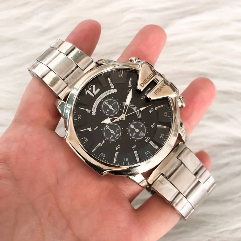 ساعت دیزل مردانه بنداستیل نقره ای تک موتوره کیفیت مناسب طرح سه موتوره شش ماه گارانتی موتور دارای جعبه و گارانتی قطر شیشه ساعت مردانه حدودا 40 میلیمتر
