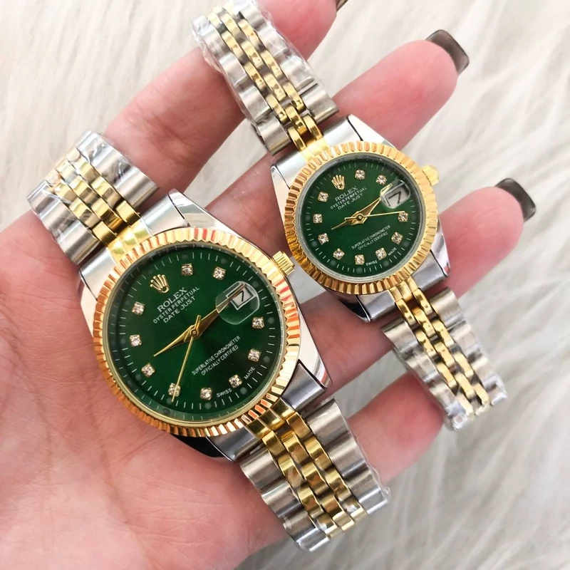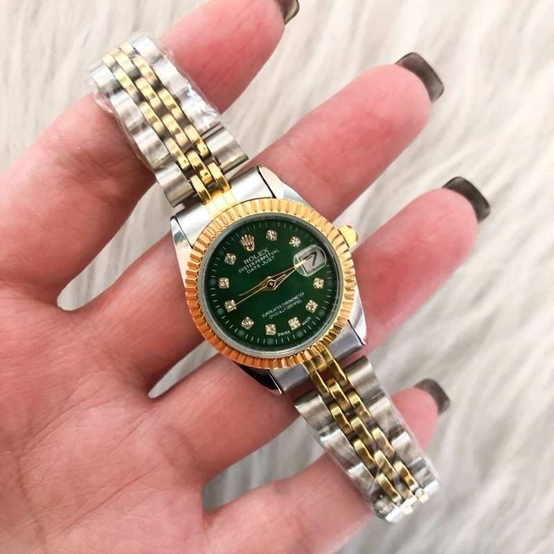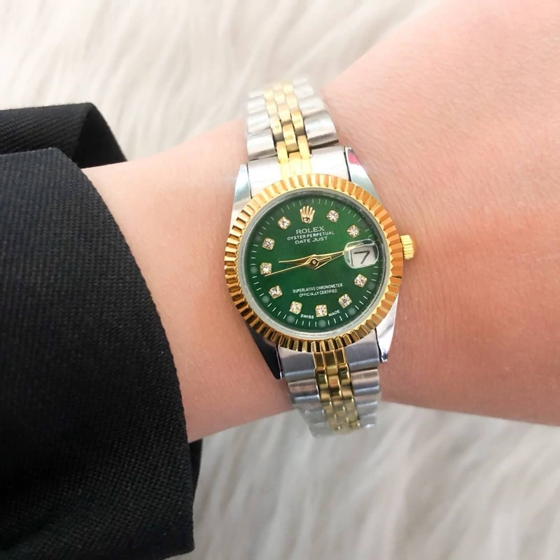 ساعت زنانه رولکس بند دو رنگ صفحه سبز