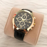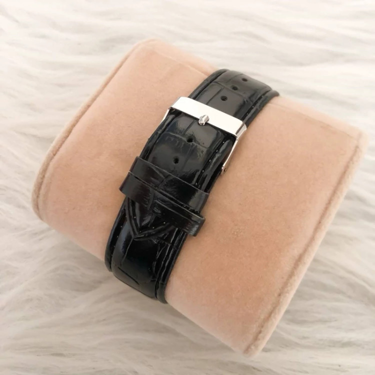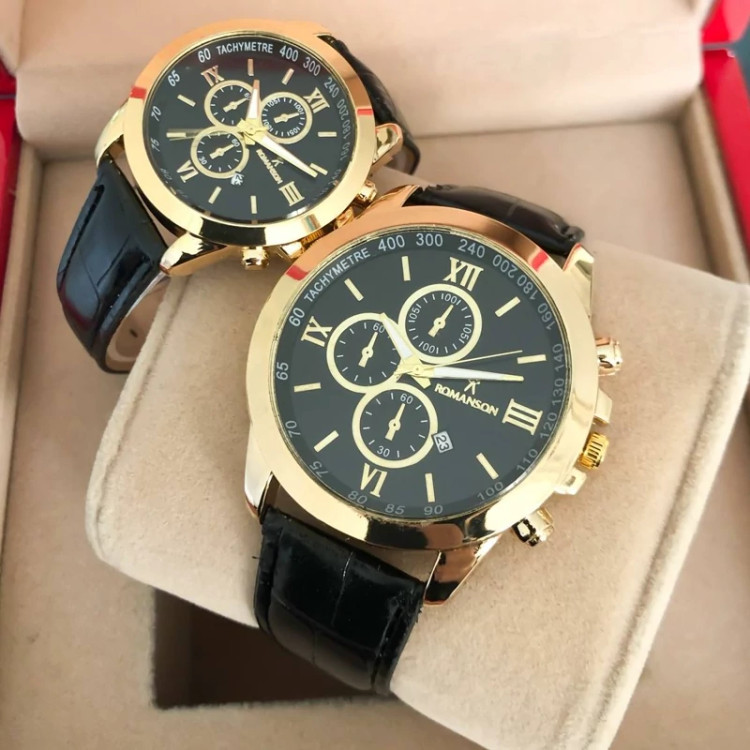 ست ساعت رومانسون بندچرم مشکی صفحه مشکی طرح سه موتوره