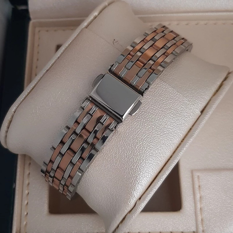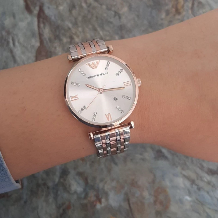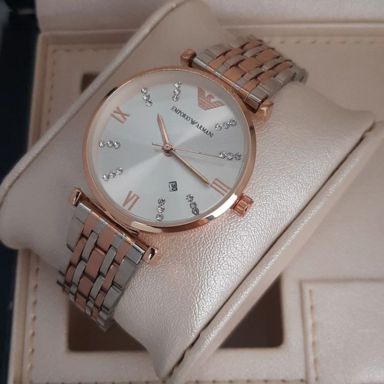 ساعت امپریوآرمانی زنانه بنداستیل دو رنگ رزگلد - کیفیت عالی - شش ماه گارانتی موتور - دارای تقویم