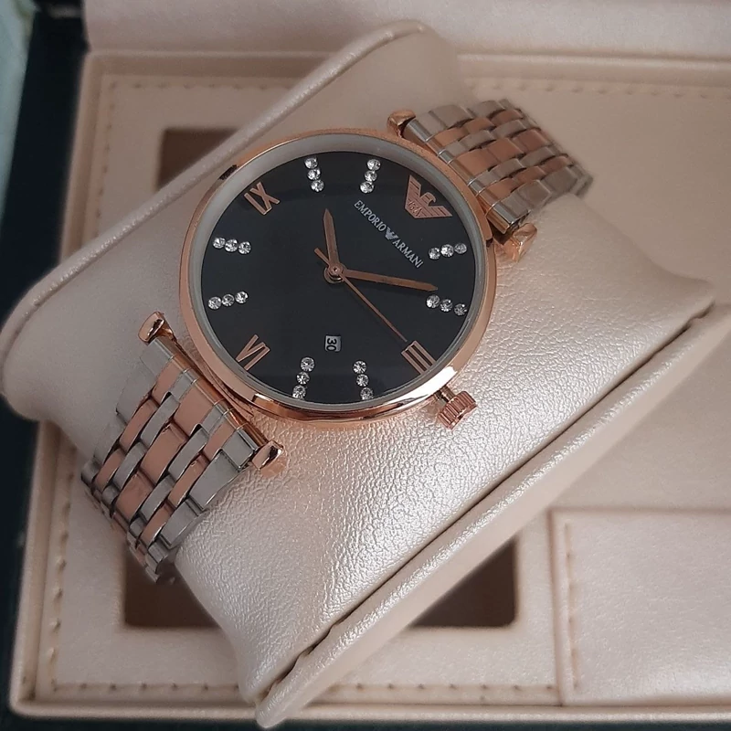ساعت امپریوآرمانی زنانه بنداستیل دو رنگ رزگلد - کیفیت عالی - شش ماه گارانتی موتور - دارای تقویم