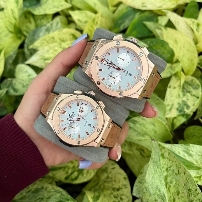 ساعت های هابلوت مردانه و زنانه دارای تقویم شش ماه گارانتی موتور رنگ بندی مختلف کیفیت عالی دارای جعبه و کارت ضمانت 6 ماهه
