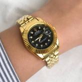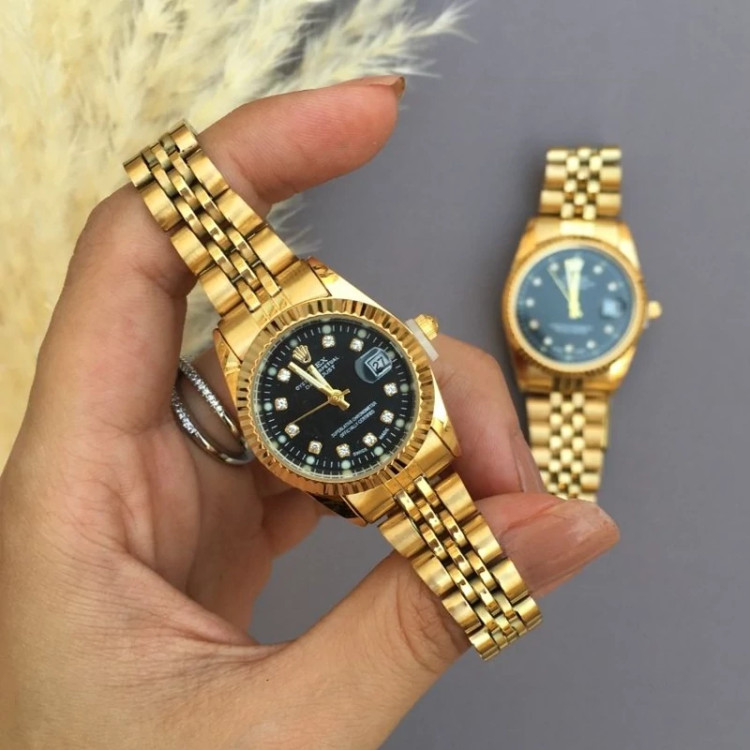 ساعت زنانه رولکس طلایی صفحه مشکی بهمراه گارانتی