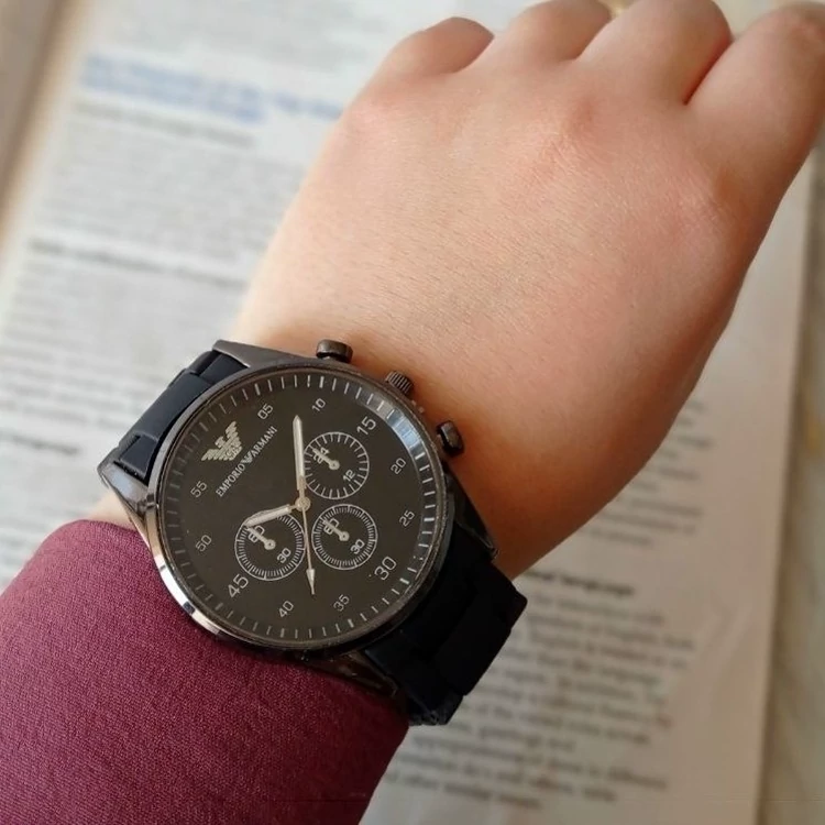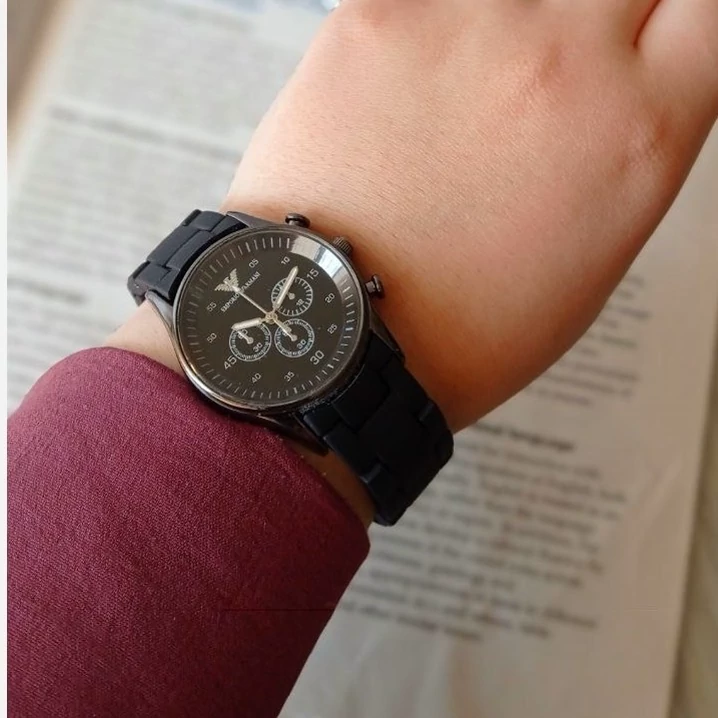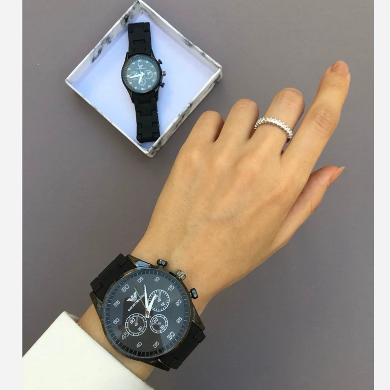 ساعت زنانه امپریوآرمانی مشکی جنس بند پیو. ضدحساسیت. رنگ مشکی قاب مشکی. کیفیت عالی شش ماه ضمانت موتور قطر شیشه ساعت مردانه 35 میلیمتر قطر شیشه ساعت زنانه حدودا 30 میلیمتر