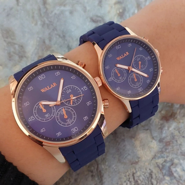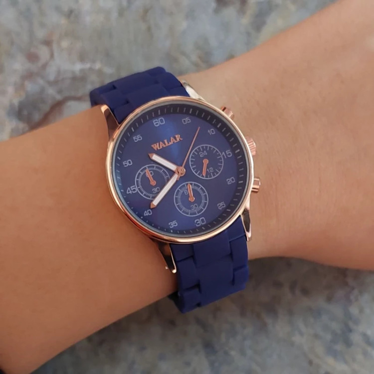 ساعت والار سورمه ای بند پیو. ضدحساسیت. قاب رزگلد
