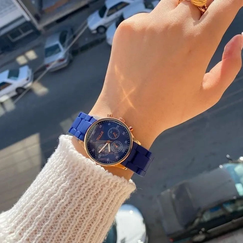 ساعت والار سورمه ای بند پیو. ضدحساسیت. قاب رزگلد