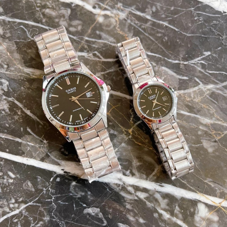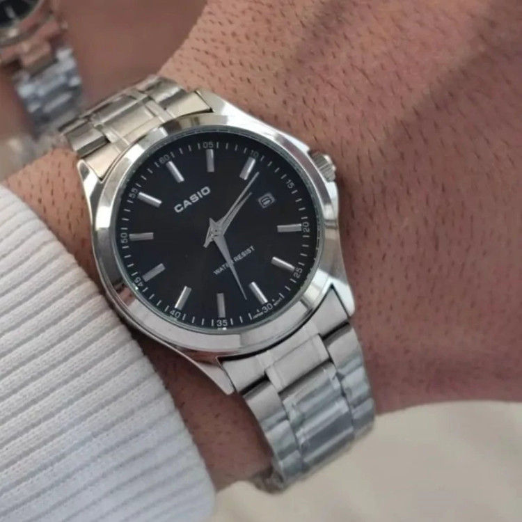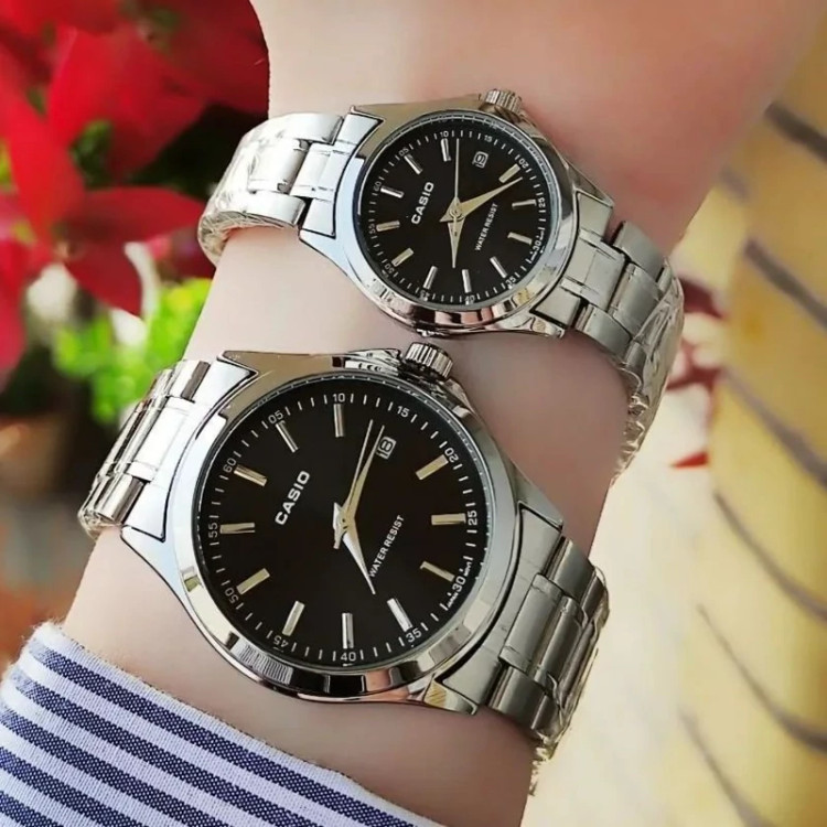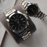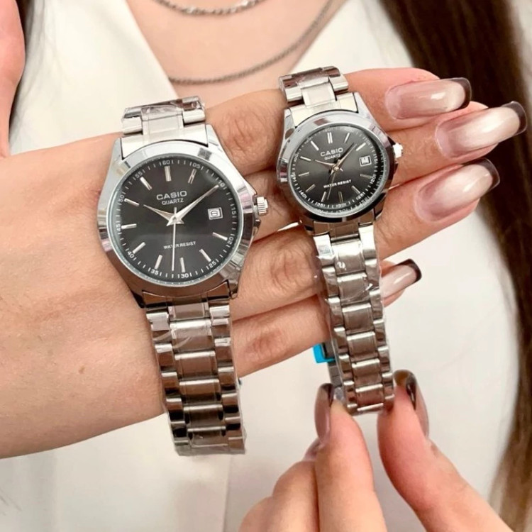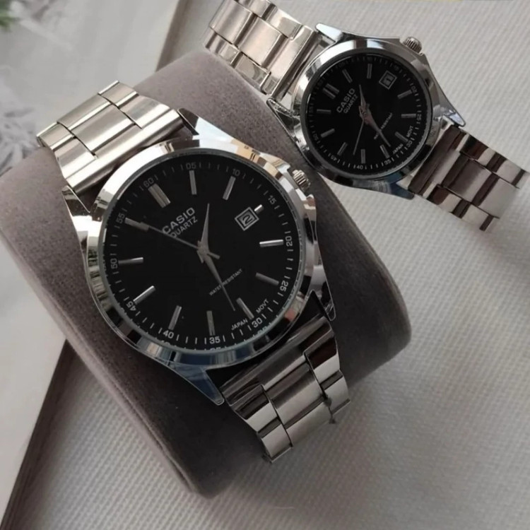 ساعت ست کاسیو نقره ای صفحه مشکی با گارانتی