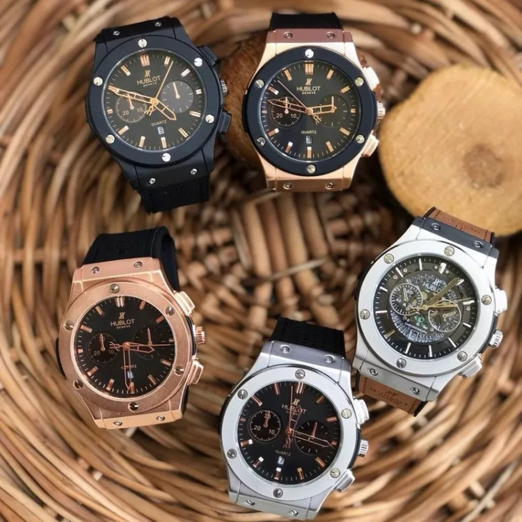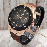 ساعت هابلوت مشکی رزگلد بند قهوه ای