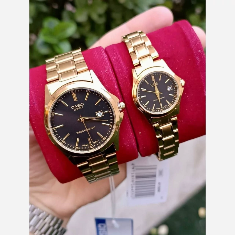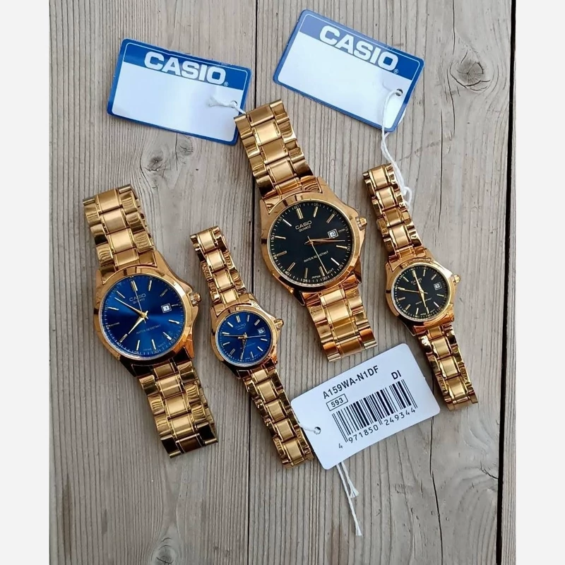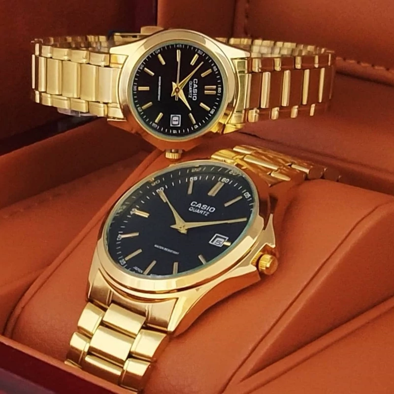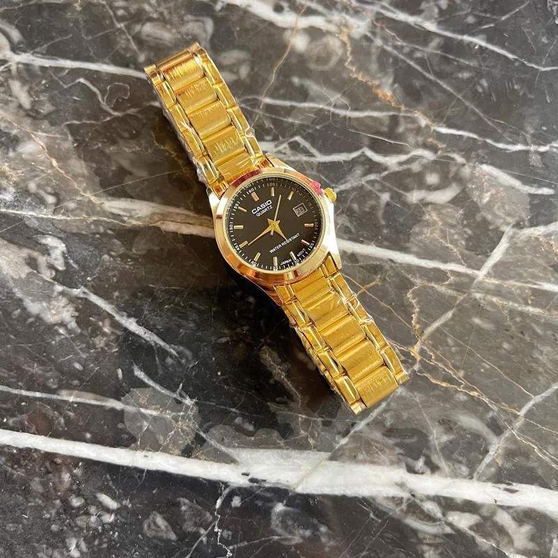 ساعت کاسیو زنانه بند و قاب طلایی صفحه مشکی تقویم دار ثبات رنگ بالا کیفیت عالی ارسال رایگان ب همراه جعبه و کارت گارانتی ۶ ماهه موتور فروش ب صورت ست و تک