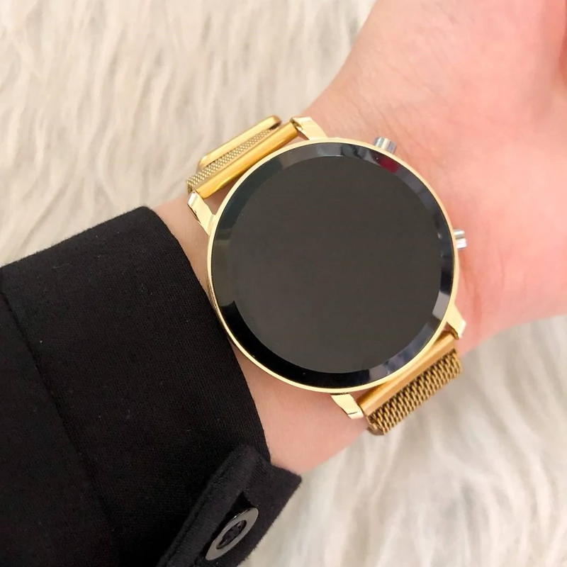 ست ساعت ال ای دی طلایی بند مگنتی لایت قرمز بهمراه نیم ست قلب و انگشتر مناسب هدیه ارسال رایگان