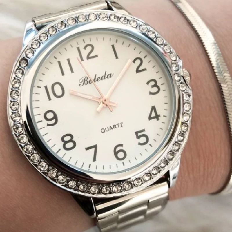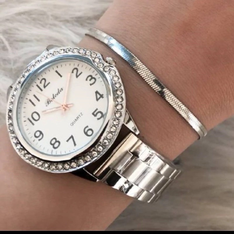 ساعت مچی زنانه بندنقره ای صفحه گرد قاب نگین سفید مارک بالدا کیفیت خوب شش ماه گارانتی موتور دارای جعبه کادویی مخصوص ساعت و کارت ضمانت قطر شیشه حدودا 3 سانت ارسال رایگان
