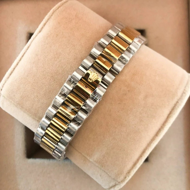 ساعت مچی مردانه مارک رولکس طرح دراگون دارای تقویم کیفیت عالی بنداستیل دورنگ طلایی صفحه مشکی شش ماه گارانتی موتور دارای ج