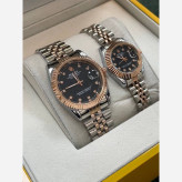 ساعت مردانه رولکس صفحه مشکی بند نقره ای رز گلد