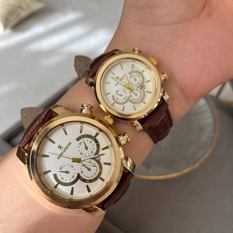 ساعت مردانه رومانسون طرح 3 موتوره بند چرم قهوه ای