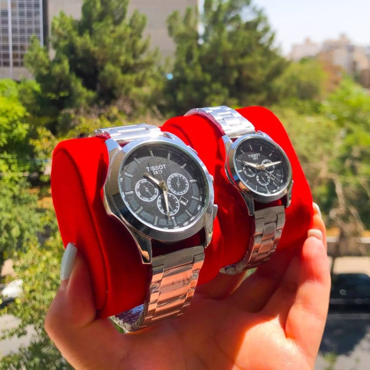 ساعت ست تیسوت نقره ای صفحه مشکی