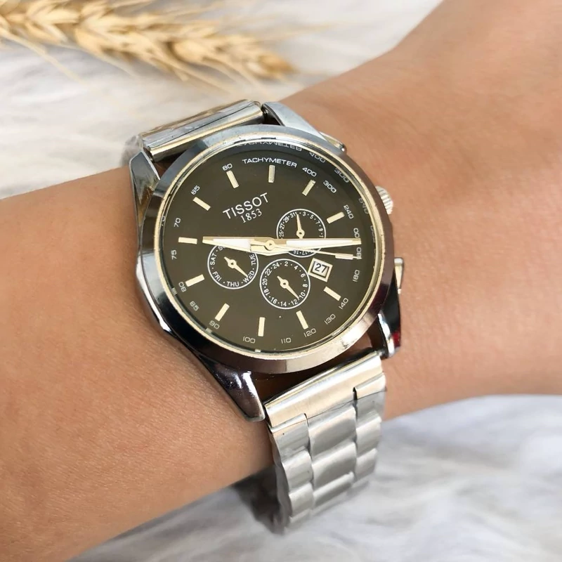 ساعت ست تیسوت نقره ای صفحه مشکی