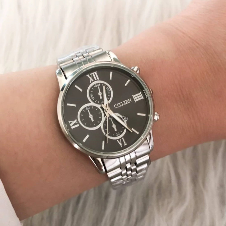ساعت سیتیزن بندنقره ای رنگ صفحه مشکی