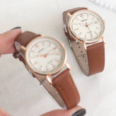مردانه و زنانه بندچرمی عسلی صفحه سفید ساده
