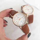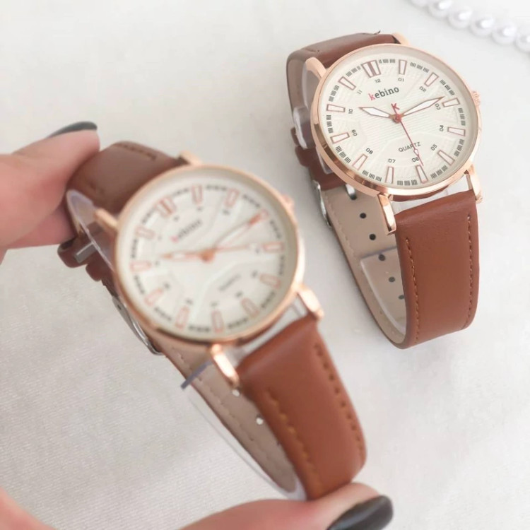 ساعت زنانه مارک kebino بند چرمی عسلی صفحه ساده