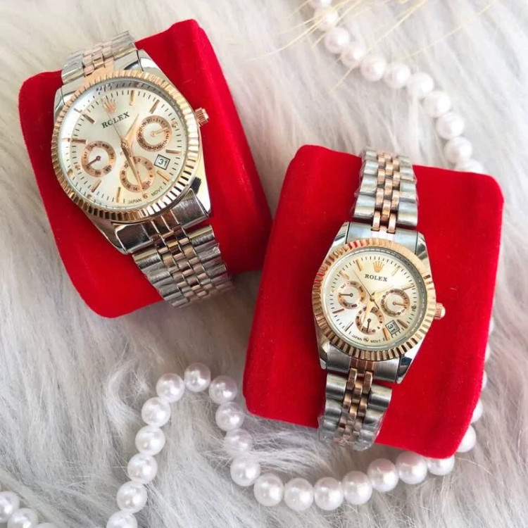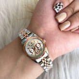 ساعت ست رولکس طرح 3 موتوره نقره ای رز گلد صفحه سفید با گارانتی موتور