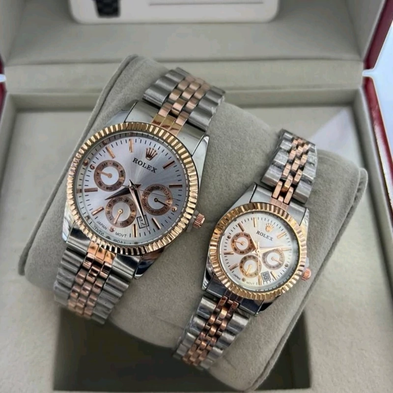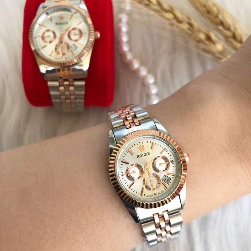 ساعت ست رولکس طرح 3 موتوره نقره ای رز گلد صفحه سفید با گارانتی موتور