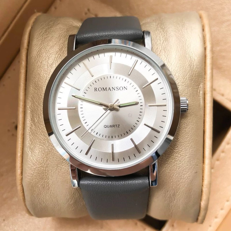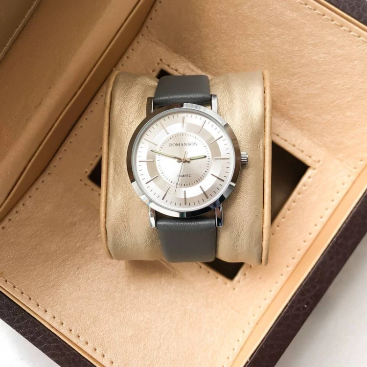 ساعت مردانه رومانسون بند چرمی طوسی