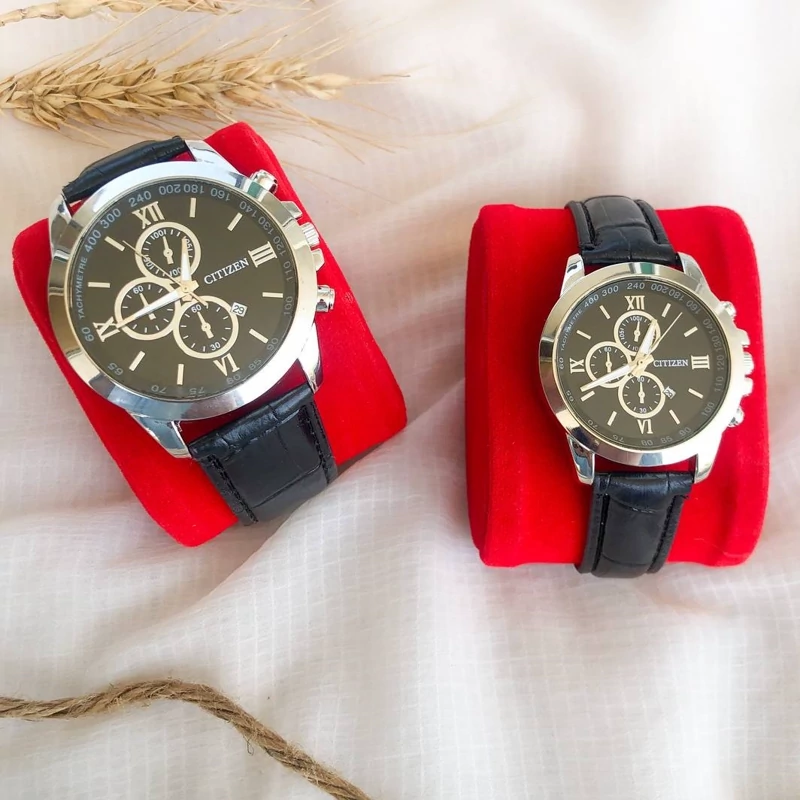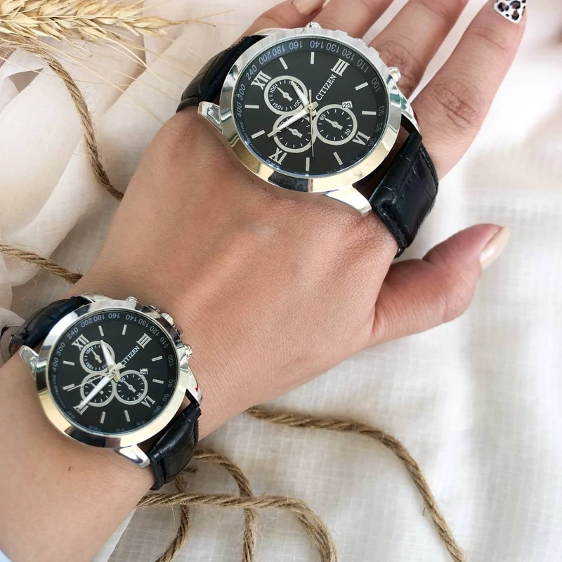 ساعت زنانه بندچرم مشکی صفحه مشکی قاب نقره ای. طرح سه موتوره دارای تقویم. کیفیت عالی. شش ماه گارانتی موتور ارسال با جعبه کادویی و کارت ضمانت قطر شیشه ساعت مردانه ۳۸ میلیمتر قطر شیشه ساعت زنانه ۲۸ میلیمتر
