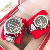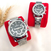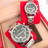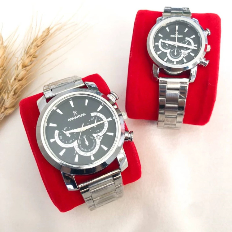 ست ساعت زنانه و مردانه مارک رومانسون بنداستیل نقره ای صفحه مشکی. طرح سه موتوره