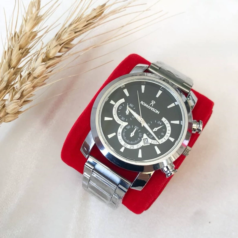 ست ساعت زنانه و مردانه مارک رومانسون بنداستیل نقره ای صفحه مشکی. طرح سه موتوره