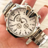 ساعت دیزل مردانه بنداستیل نقره ای صفحه سفید