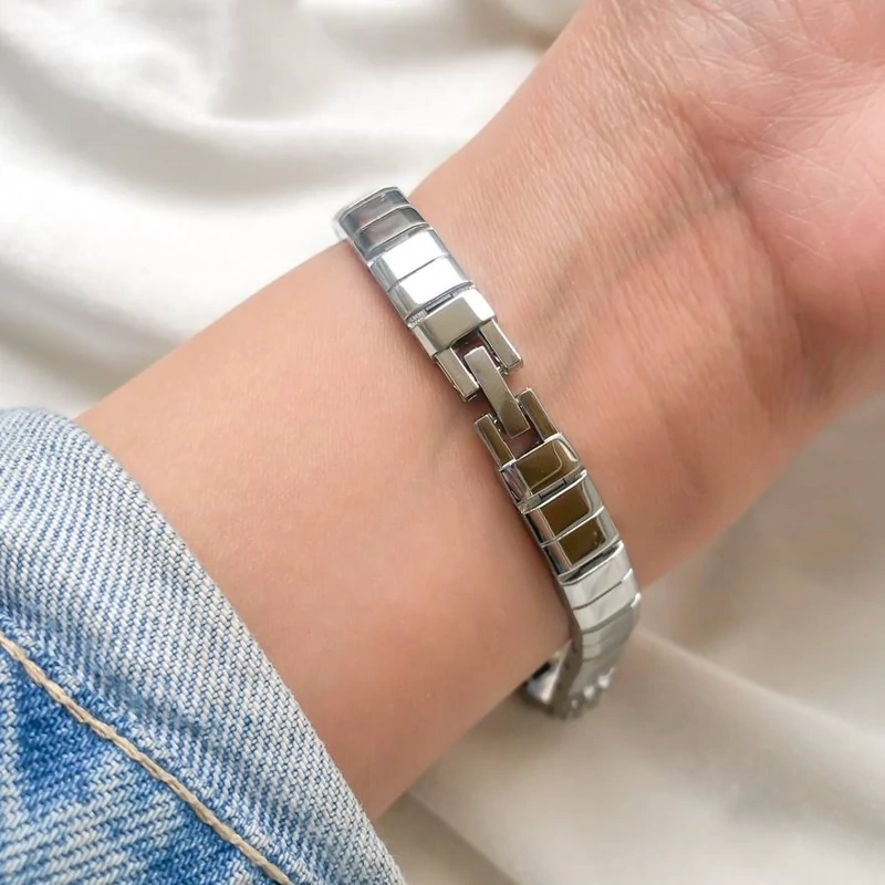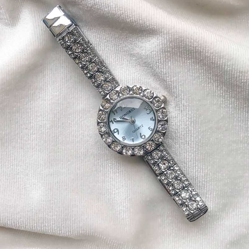 ساعت زنانه بندو قاب نقره ای نگین سفید صفحه آبی ملایم کیفیت عالی شش ماه گارانتی موتور دارای جعبه و کارت گارانتی