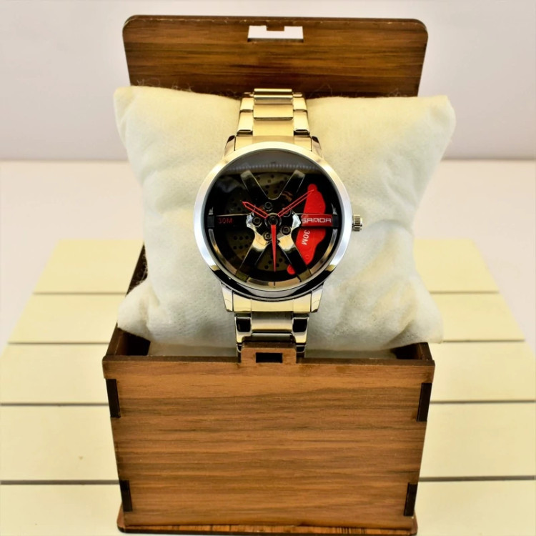 ساعت مچی مردانه طرح رینگی چرخشی بند نقره ای