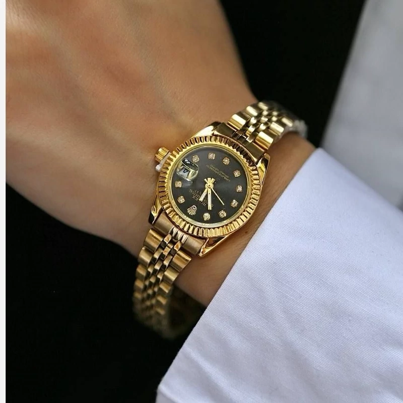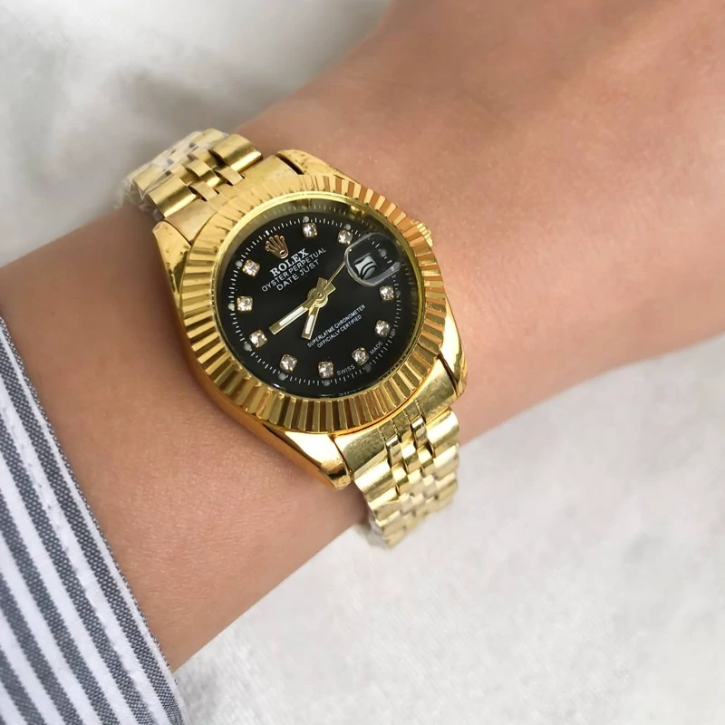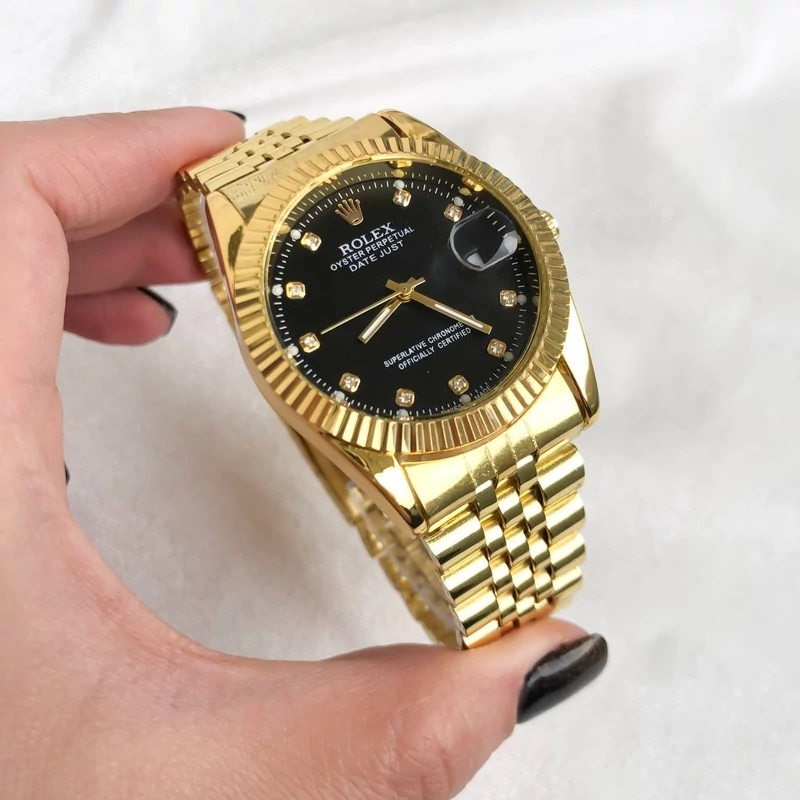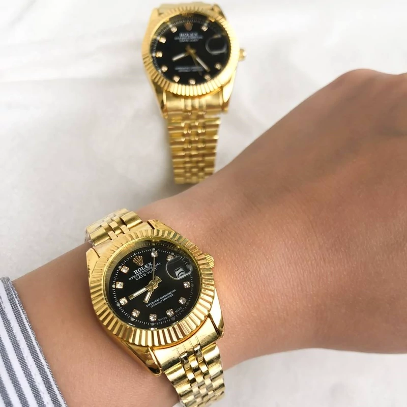 ست ساعت رولکس طلایی صفحه مشکی با 6ماه گارانتی موتور