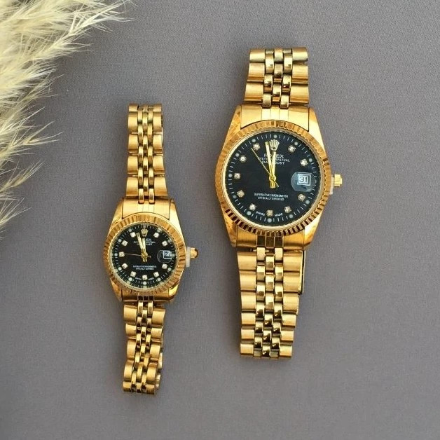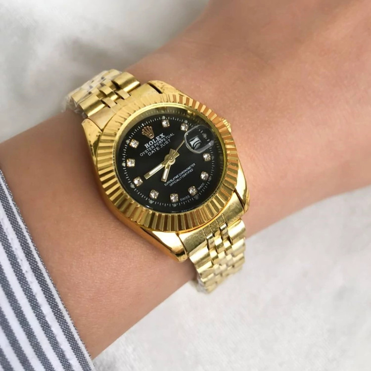 ساعت زنانه رولکس طلایی صفحه مشکی با گارانتی