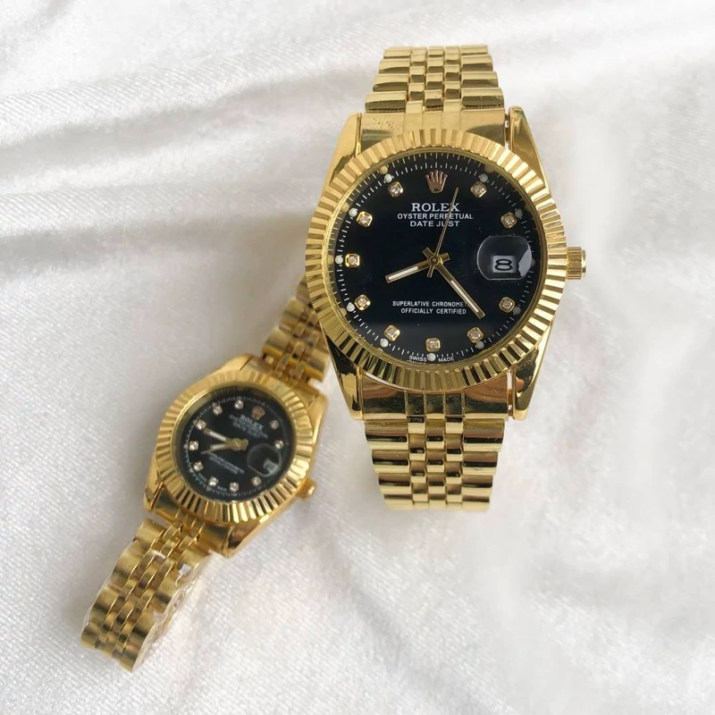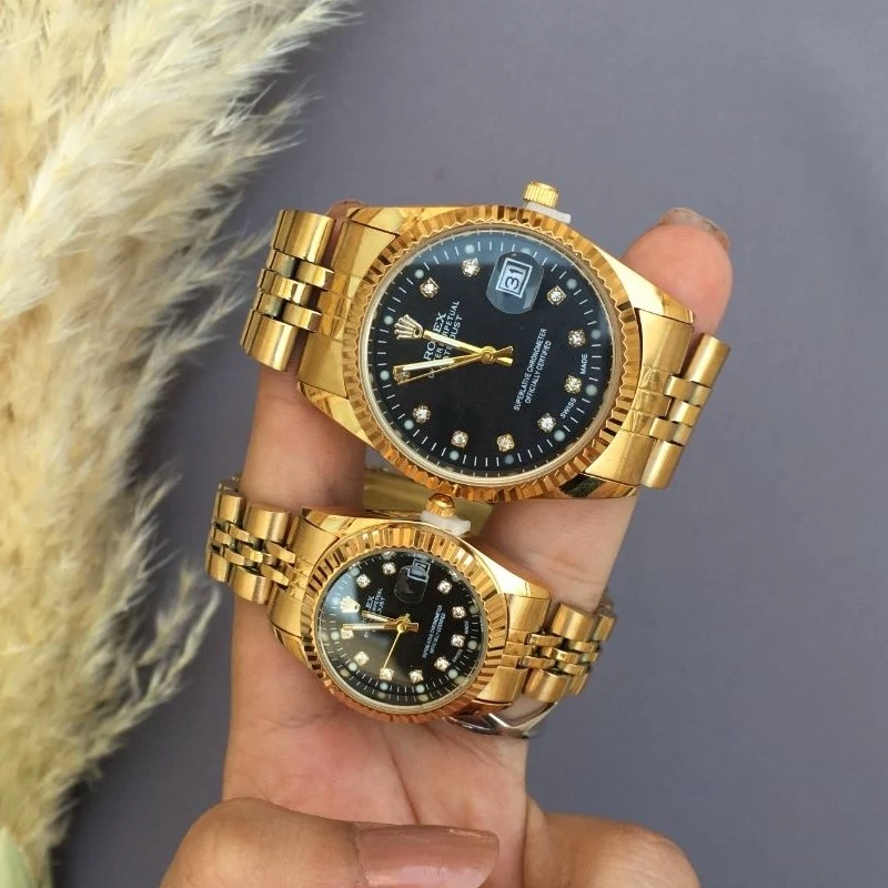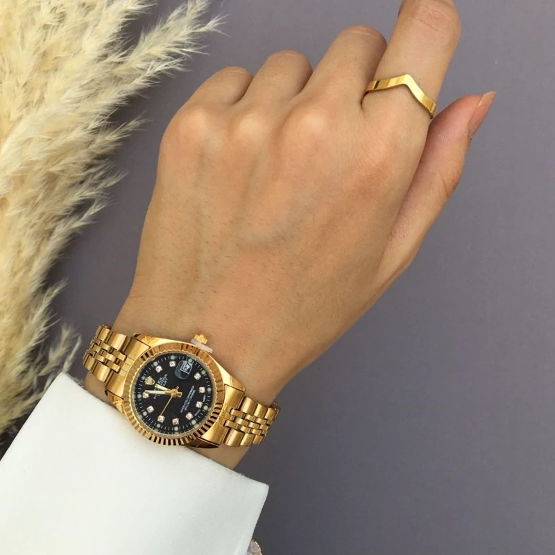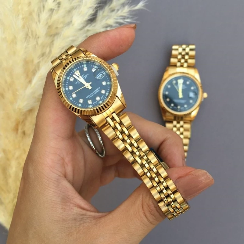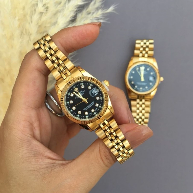 ساعت زنانه رولکس طلایی صفحه مشکی با گارانتی