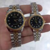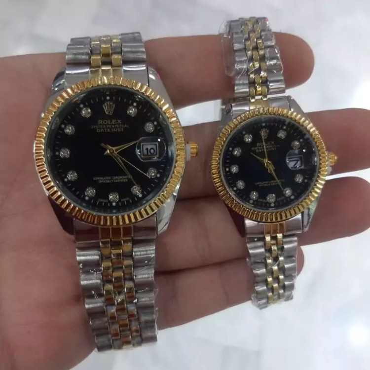 ست ساعت رولکس بنداستیل دورنگ صفحه مشکی. شیشه ذره بینی