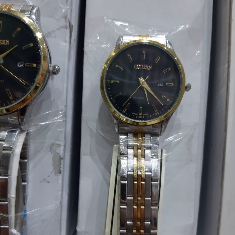 ساعت سیتیزن بنداستیل دورنگ صفحه سفید کیفیت عالی. تقویم دار. شش ماه گارانتی موتور دارای جعبه چوبی مخصوص ساعت و کارت گارانتی صفحه سفید اتمام موجودی صفحه مشکی موجوده قطر شیشه ساعت مردانه حدودا 35 میلیمتر قطر شیشه ساعت زنانه حدودا 28 میلیمتر
