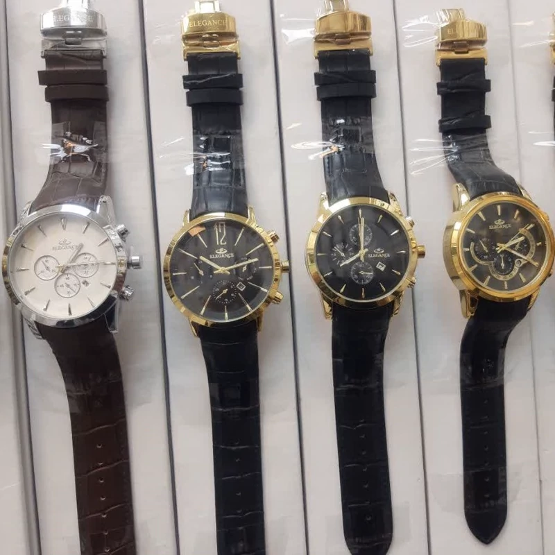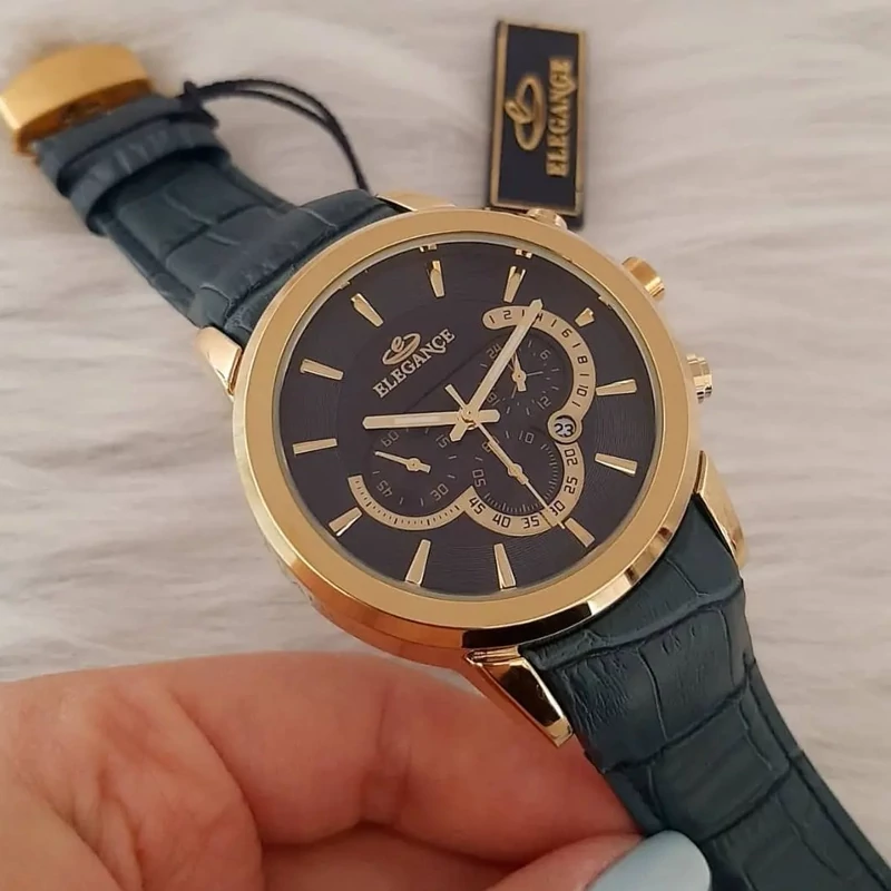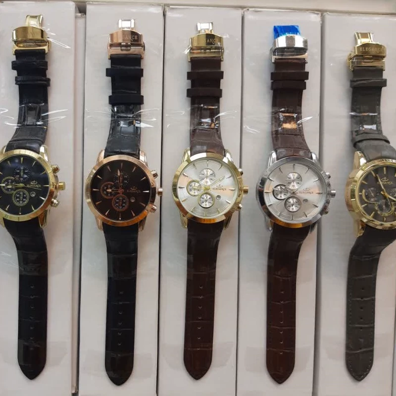 ساعت الگانس مردانه موتور ژاپن قفل پروانه ای تک موتوره ضد آب طرح سه موتوره دارای تقویم بند چرم ارسال رایگان،همراه با جعبه و کارت گارانتی یکسال ضمانت موتور قبل از خرید رنگ انتخابی موجودی گرفته شود فروش ب صورت ست و تک