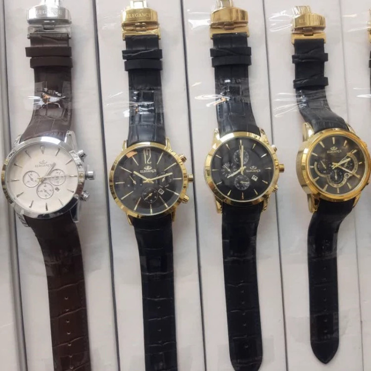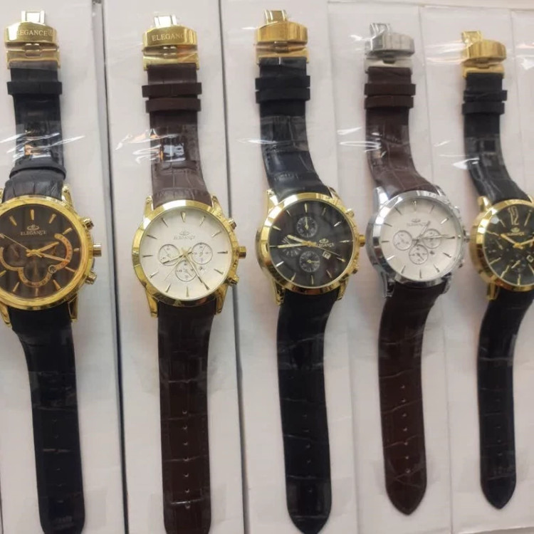 ساعت الگانس مردانه و زنانه موتور ژاپن رنگ ثابت قفل پروانه ای تک موتوره طرح سه موتوره دارای تقویم