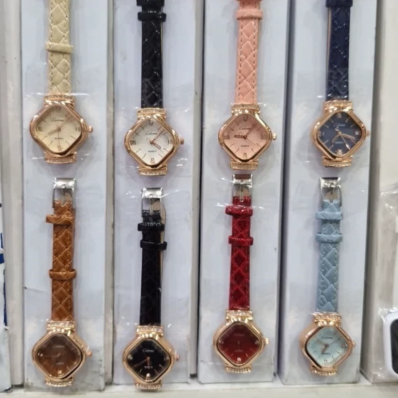 ساعت بند چرم صفحه لوزی و دستبند چشم زخم