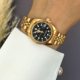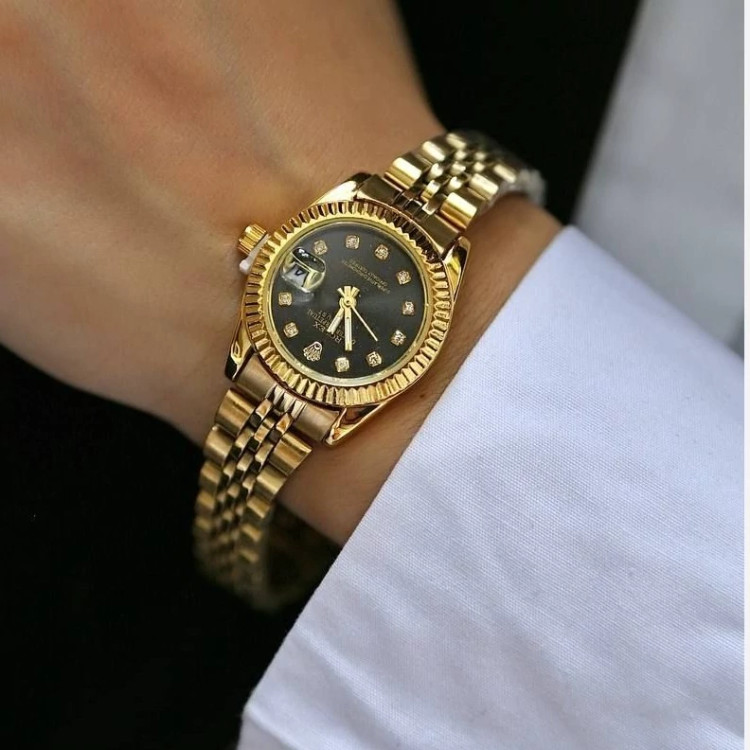 ساعت ست رولکس بند و قاب طلایی صفحه مشکی با گارانتی موتور