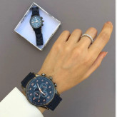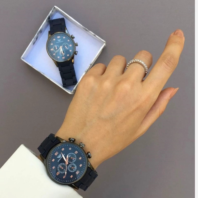 ساعت مچی ست امپریوآرمانی سورمه ای قاب مشکی