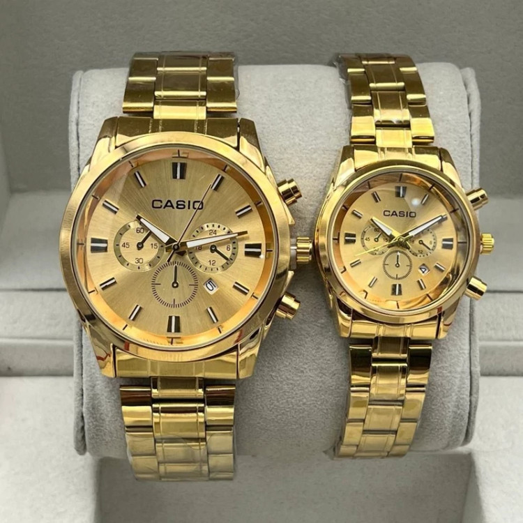 ست ساعت کاسیو طلایی صفحه طلایی طرح 3 موتوره