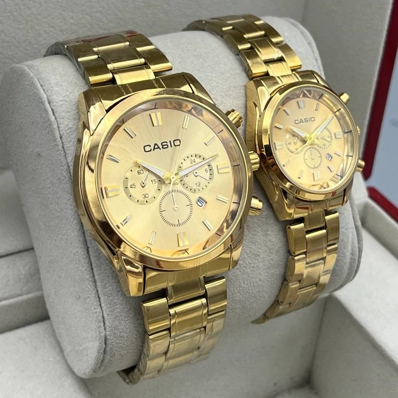 ست ساعت کاسیو طلایی صفحه طلایی طرح 3 موتوره